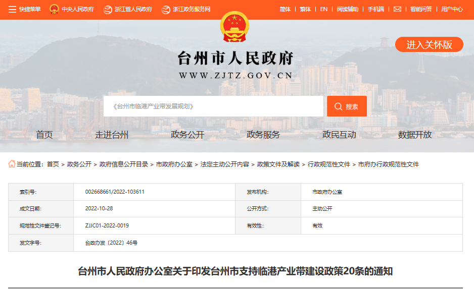 同年,推出《支持臨港產(chǎn)業(yè)帶建設(shè)政策20條》《臺(tái)州臨港產(chǎn)業(yè)帶“飛地”政策試行辦法》等,進(jìn)一步明確飛地經(jīng)濟(jì)、財(cái)政金融、科技、用地、用能等“一攬子”支持政策內(nèi)容,進(jìn)一步推進(jìn)產(chǎn)業(yè)向臨港集聚、要素向五大城集中,助推臺(tái)州現(xiàn)代制造業(yè)高質(zhì)量發(fā)展。