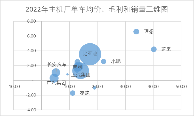 圖:2022年本土主機廠上市公司均價、毛利、銷量三維圖,來源:錦緞研究院