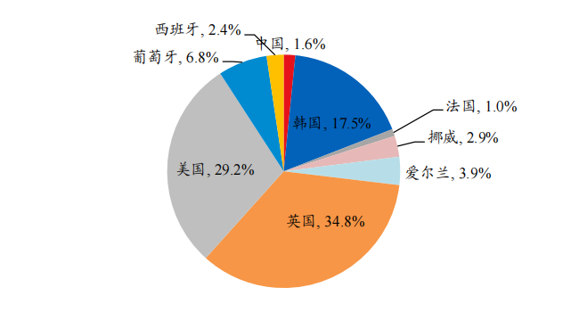 近年來,海上風(fēng)電發(fā)展迅速,開發(fā)區(qū)域主要集中在潮間帶和近海海域。從可開發(fā)量看,近海資源占比少。據(jù)ESMAP測算,美國、中國、日本等海風(fēng)資源儲量分別可達(dá)5259/2982/1897GW,其中深海(>50m)占比達(dá) 64%。