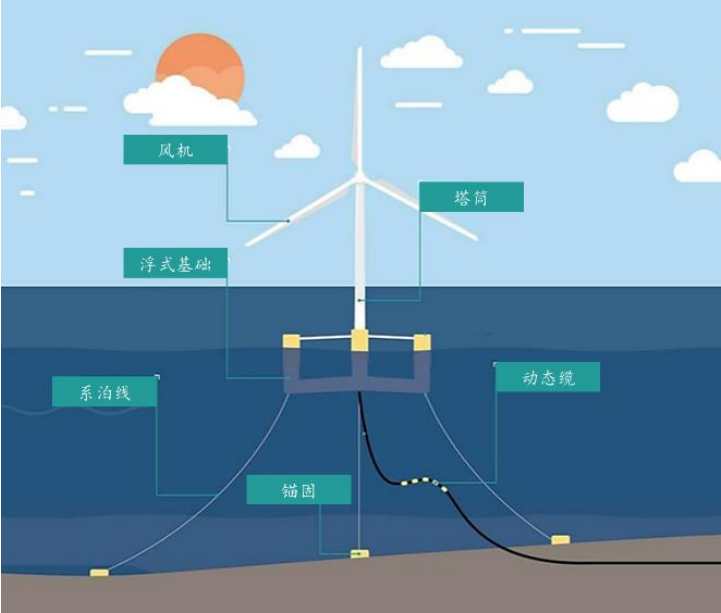 除系泊系統(tǒng)外,還有進(jìn)行用電傳輸?shù)膭討B(tài)海纜部分。