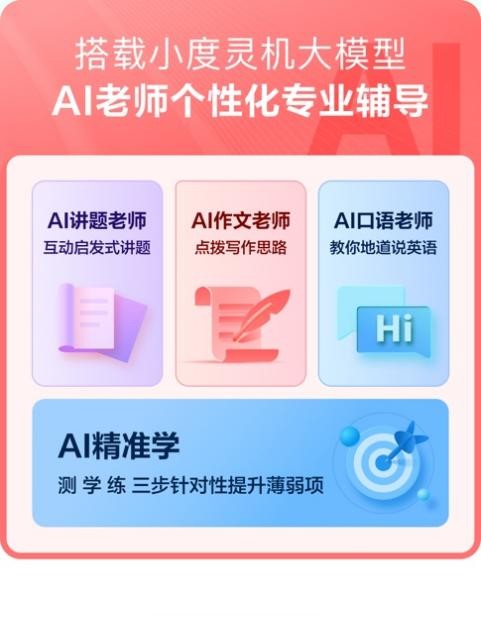 小度青禾學習手機通過將AI技術與教育資源打通,變身為孩子身邊的「AI口語老師」、「AI講題老師」以及「AI作文老師」,可對孩子進行一對一個性化專業教學。配合海量的免費學習資源,讓孩子的學習更加輕松、高效。同時,小度青禾學習手機還具有管控和安防功能,例如應用模式,則可通過應用時長時段管控、精準定位防走失等及時關注孩子學習和生活狀態,有效避免孩子熬夜刷視頻、玩游戲等。