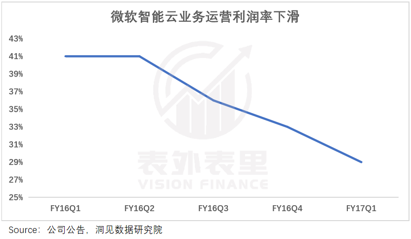 2016年,微軟同樣站在了懸崖邊上:從“一本萬利”的套裝軟件銷售,轉型至“螞蟻搬大象”的云服務,并且在轉型陣痛期多次降低產品價格,最終陷入利潤下降、投資回報減少等輿論漩渦。