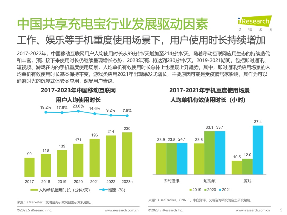 移動互聯網生態的迅速發展和手機耗電量的提升促進了共享充電寶行業的快速擴張,伴隨線下場景景氣的恢復,共享充電寶行業也將迎來新一輪的景氣上行。本報告通過對驅動因素、消費需求與典型商業模式等維度的細分拆解,深入剖析共享充電寶行業的現狀與發展,并對行業未來趨勢做出前瞻性預判。