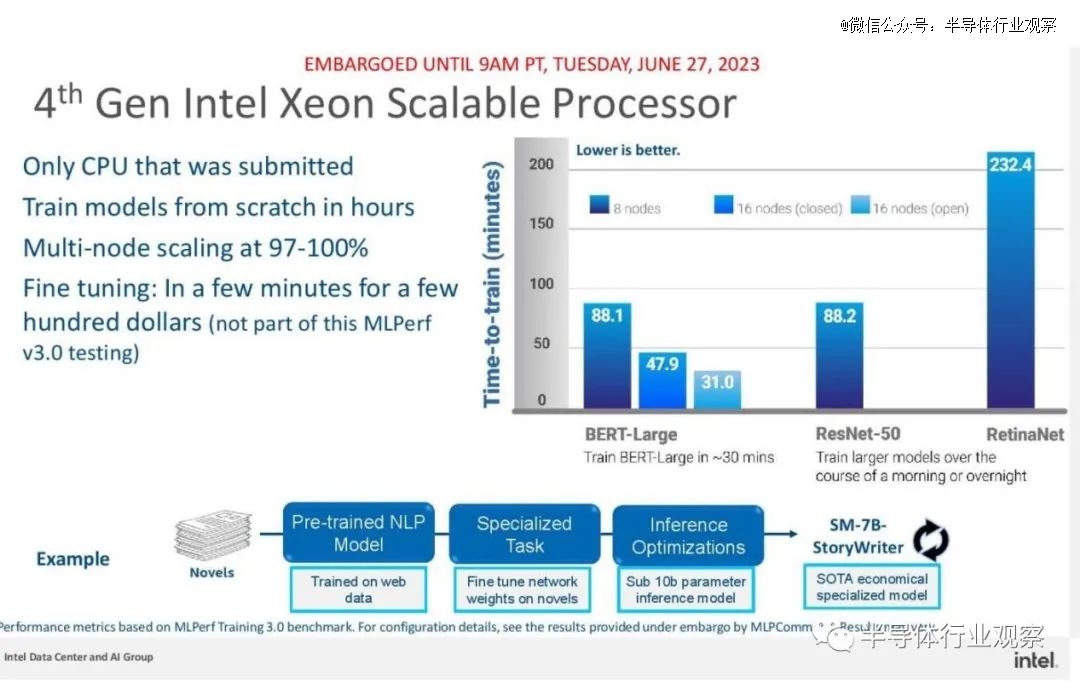 除了Gaudi 2,英特爾的另一款可以跑大模型的產品是第四代至強CPU。不過CPU的應用空間相對有局限性,英特爾的CPU只適用于少數從頭開始間歇性訓練大型模型的客戶,并且通常在他們已經部署來運行業務的基于Intel的服務器上使用。所以CPU不算是英特爾用來主打生成式AI市場的產品,可以算作是一個補充方案。