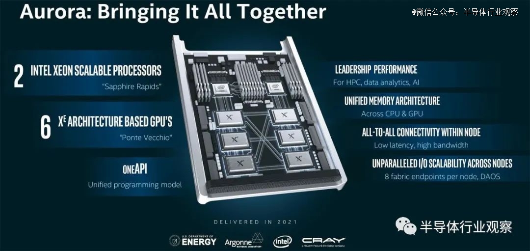對于如此火爆的生成式AI領域,英特爾自然也想分一杯羹。英特爾在個人電腦市場的搖錢樹正在被逐漸侵蝕,他們早就看中了數據中心以及AI的市場。但在生成式AI領域,不同于英偉達和AMD的做法,英特爾似乎不是靠GPU來打。英特爾雖然也發布了GPU產品,不過其GPU似乎暫時志不在此,而是更加注重其GPU在科學計算領域的優勢。前段時間,英特爾宣布配備了其Max系列CPU和GPU的Aurora超級計算機已經安裝完成,其中包含了63744個Ponte Vecchio 計算GPU,這算是英特爾Max系列GPU的首次大規模部署。