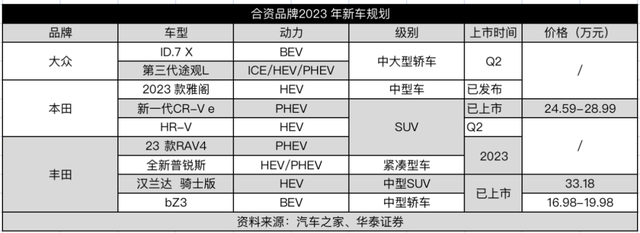 華泰證券做過一個統計,2023年大眾、本田、豐田三大合資品牌,合計只有9款新車型推出,而6個自主品牌在2023-2024年則有40款新車,節奏快的不是一星半點。
