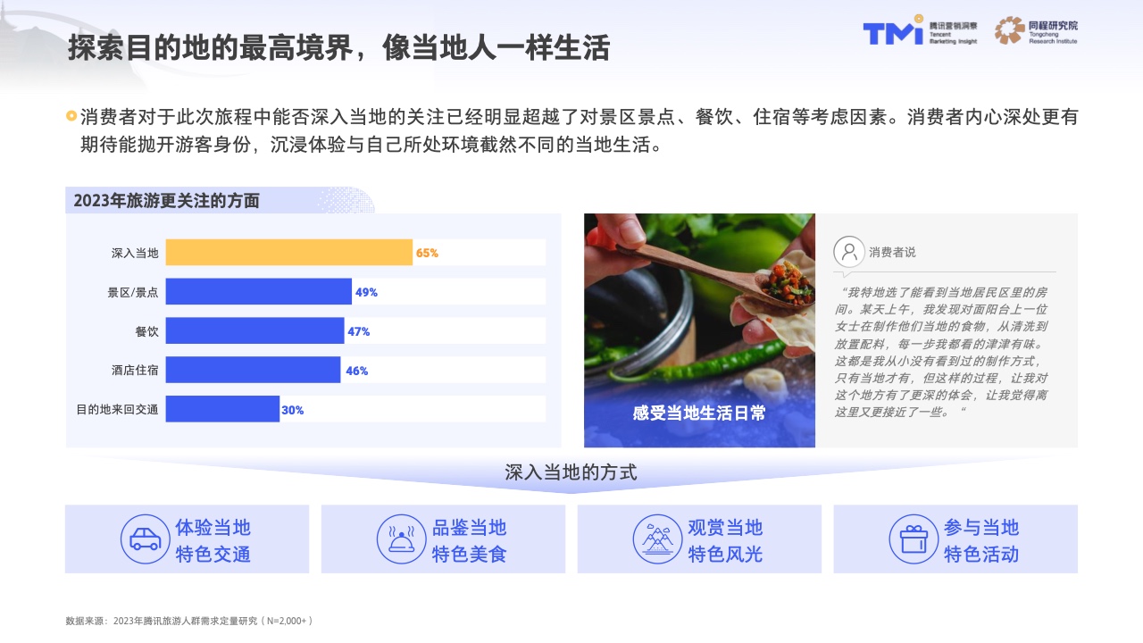 再者,82%的消費者在2023年的旅游預算規劃相較于比2019年有所增加。既要玩,更要玩的愜意與舒適。餐飲、住宿和當地活動體驗是消費者更愿在旅行中增加支出的前三位方向,以求獲得絕佳的旅游體驗。