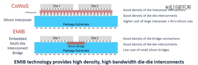 類似的還有英特爾的EMIB,區別在于通過硅橋實現互聯。但帶寬遠不及硅中介層,考慮到帶寬與數據傳輸速率息息相關,CoWoS便成了***的*選擇。