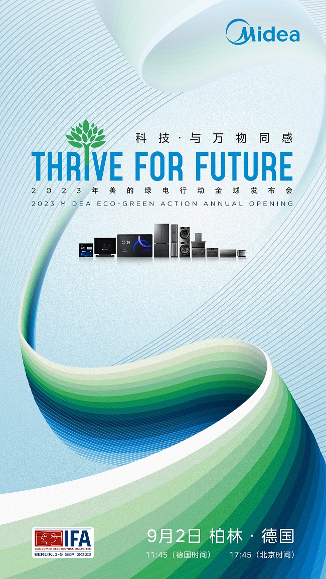 備受矚目的2023年德國柏林國際電子消費品展覽會(IFA)將于9月1日-5日在柏林會展中心盛大舉行。作為全球家電市場的領(lǐng)軍企業(yè),已連續(xù)十余年參加IFA展會的美的今年將繼續(xù)參展,并將于9月2日(北京時間)召開以“THRIVE FOR FUTURE”(科技·與萬物同感)為主題的全球發(fā)布會。屆時,美的將面向全球發(fā)起“綠電行動”,展示其在“雙碳”目標指導下,推動產(chǎn)品全生命周期綠色可持續(xù)的戰(zhàn)略布局,更將展示全新的綠色環(huán)保新品,強勢掀起國際關(guān)注熱潮。