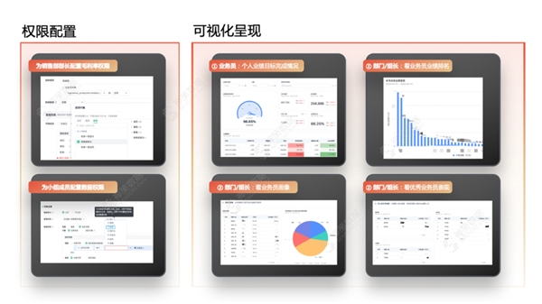 在權(quán)限分配的過程中,通過賬戶屬性與企業(yè)內(nèi)部字段關聯(lián),完成一鍵動態(tài)分配,例如,賬戶的“所屬地”屬性為“北京”,則僅能看到數(shù)據(jù)中“銷售城市”字段等于“北京”的幾行數(shù)據(jù),通過整套資源權(quán)限的管理,真正地做到數(shù)據(jù)分配的“千人千面”。