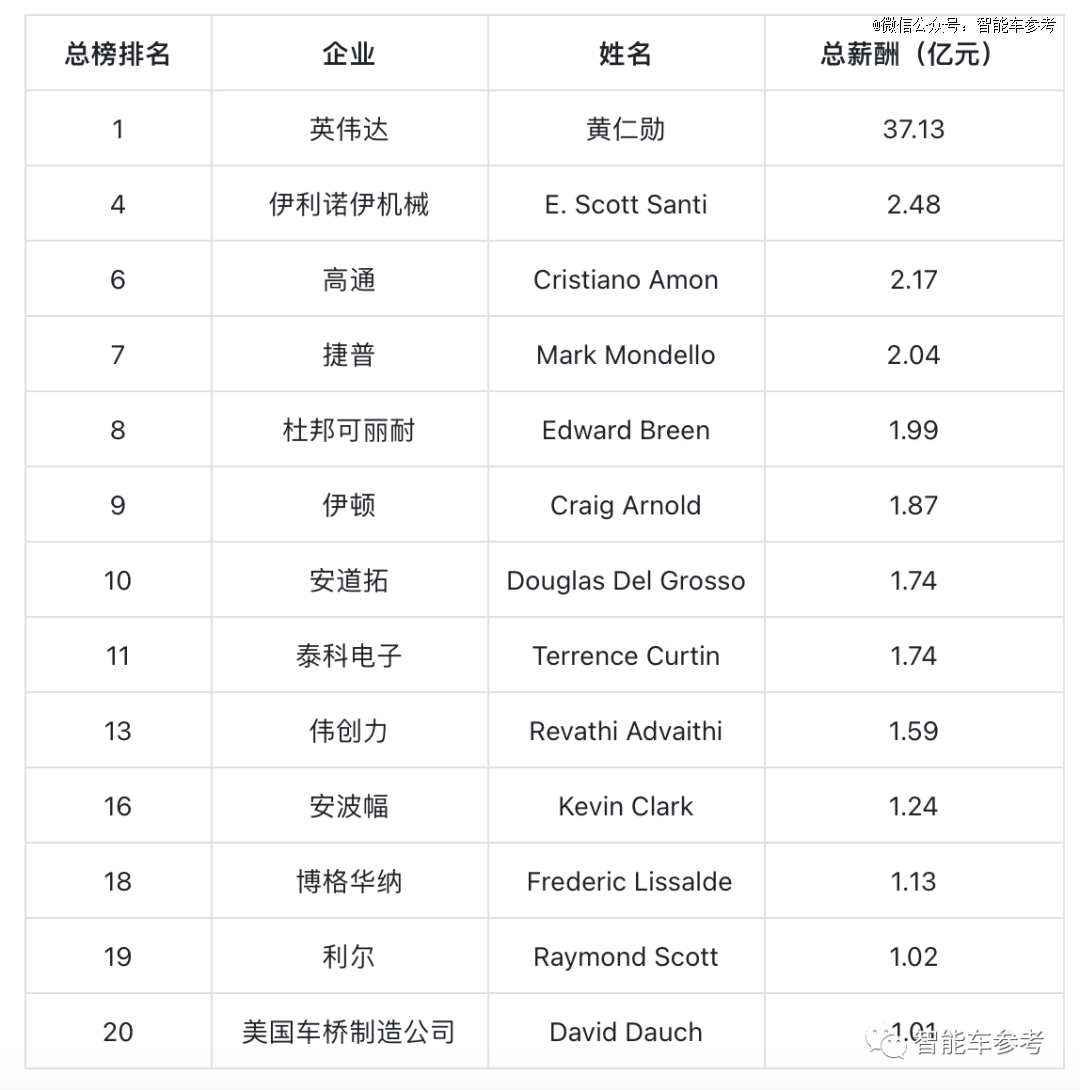 而中游主機廠CEO是排行榜中薪酬差距*的。