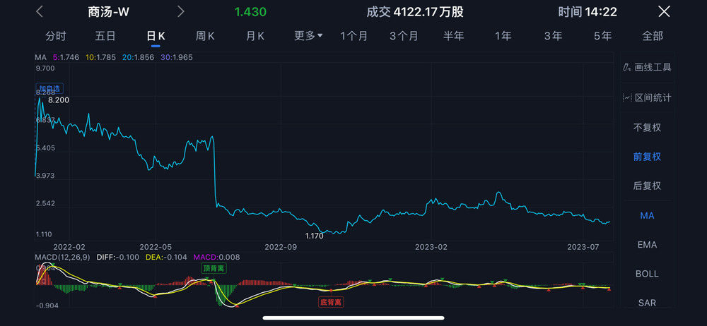 商湯股價K線(圖片來源:騰訊自選股截圖)