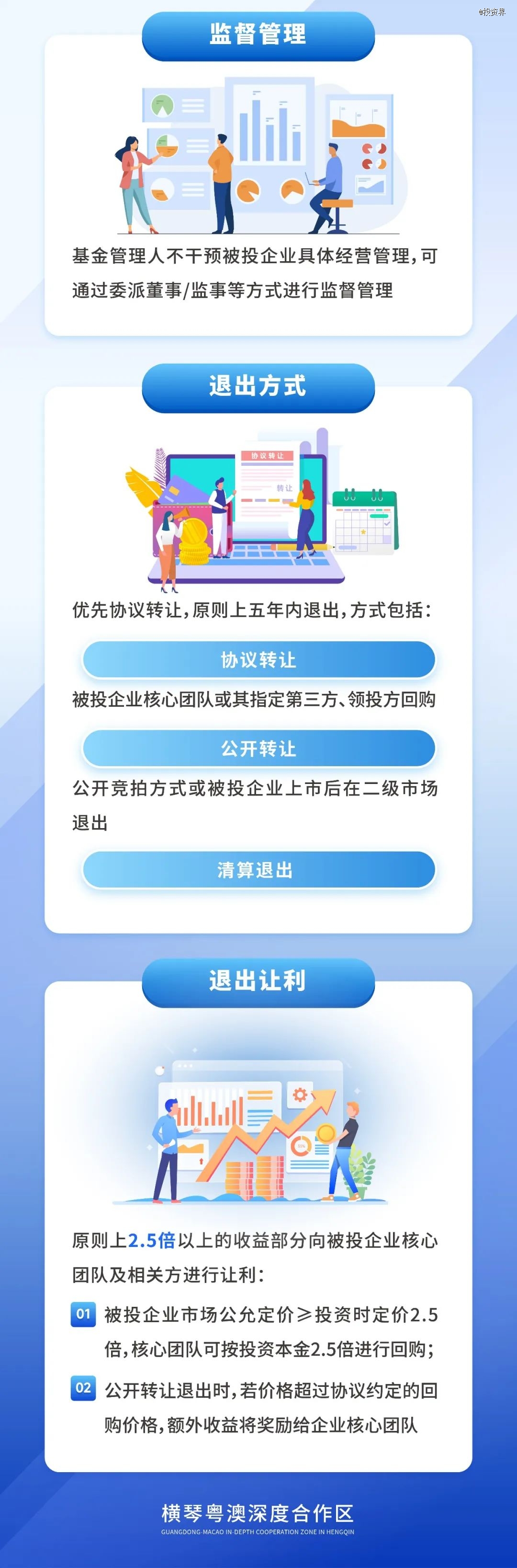 投資界(ID:pedaily2012)消息,2023年9月7日,《橫琴粵澳深度合作區天使投資基金管理辦法》正式印發。天使投資基金,是指由合作區政府投資基金出資設立的基金,采用股權投資等方式,通過政策性讓利措施,投資合作區重點產業具有高成長性的種子期、初創期的天使項目。基金將配合合作區建設,培育創新生態和加速產業發展,發揮市場資源配置功能和財政資金引導放大作用。