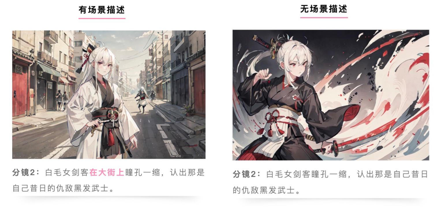 其它的幾個分鏡,我們也在這里和大家分享一下用 “江戶白刃” 一次性生成的效果,如果你有耐心,相信還能生成更加生動的分鏡: