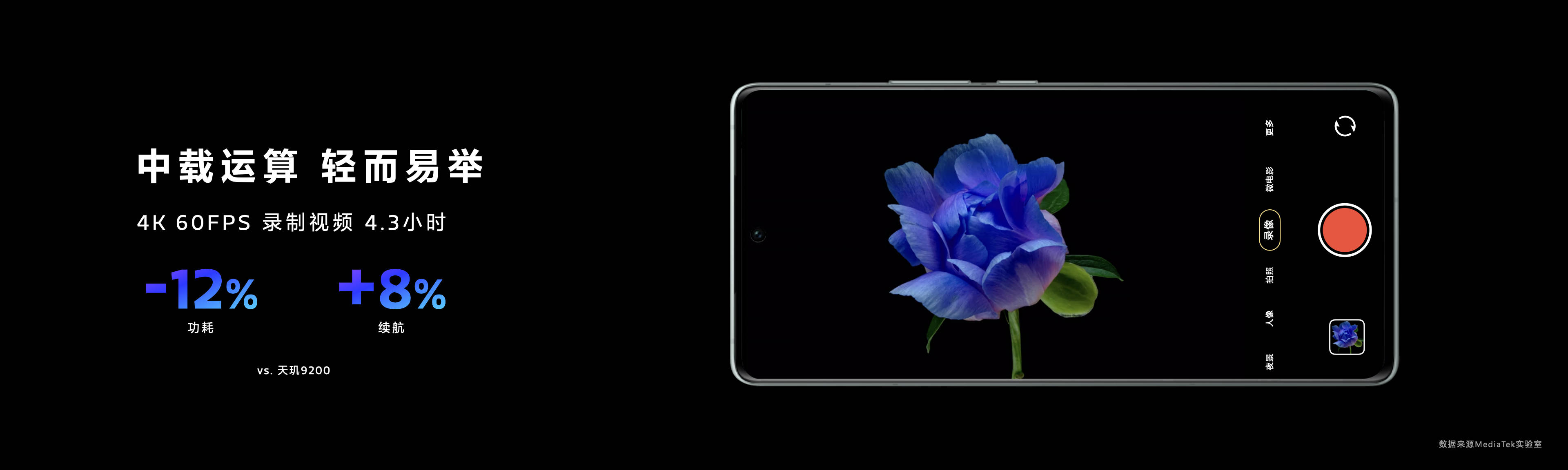 實測成績也證明了這點:錄制4K 60FPS 視頻屬于中負載場景,天璣9300功耗可降低12%。