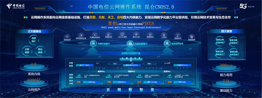 中國電信云網操作系統首創云網全棧多核超融合架構FSCCA,面向全棧異構云網信息基礎設施進行統一管理與調度,打造了靈犀、元樞、天工、啟明等4大云網內核,向內外部客戶全面開放云網NaaS能力,實現服務快速定制、業務自動開通、故障自動處置、業務智能調度,為云網融合全場景應用提供通用的系統級服務。