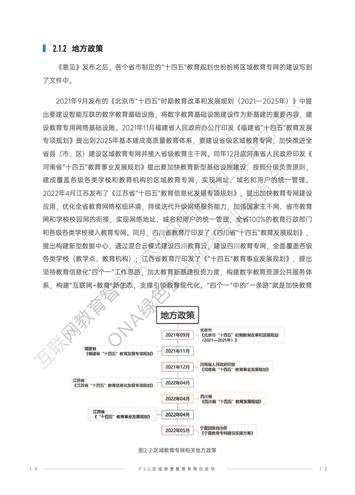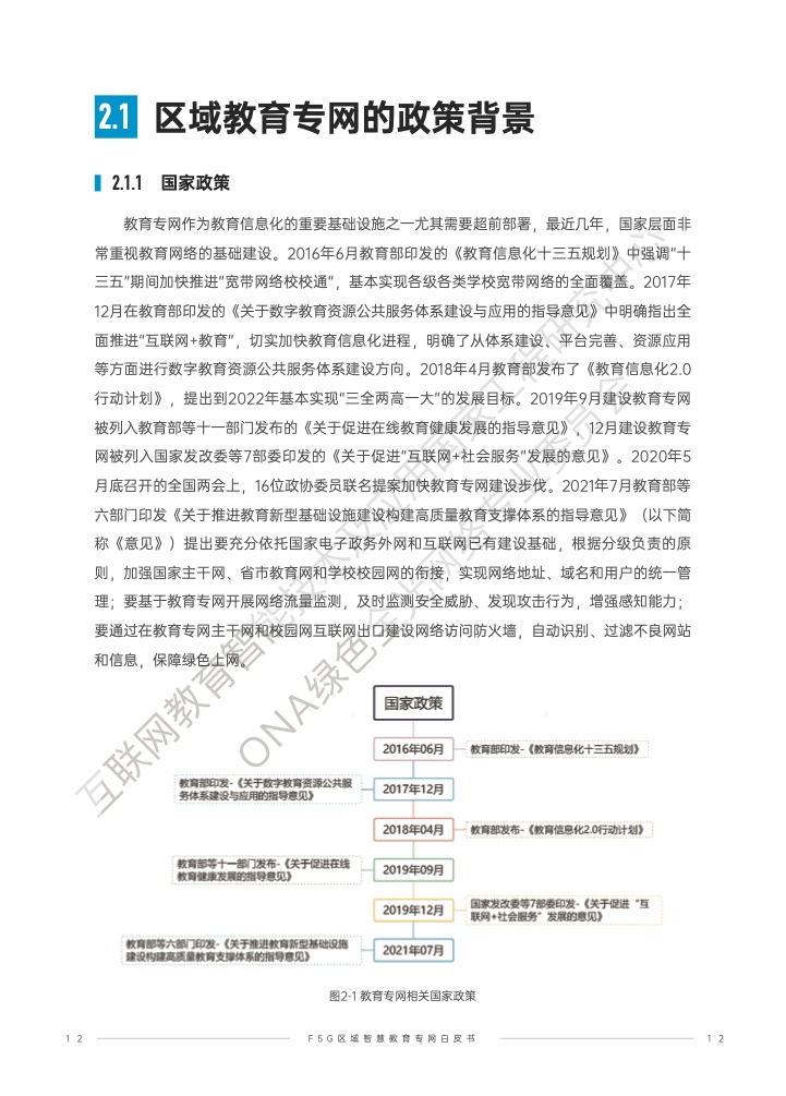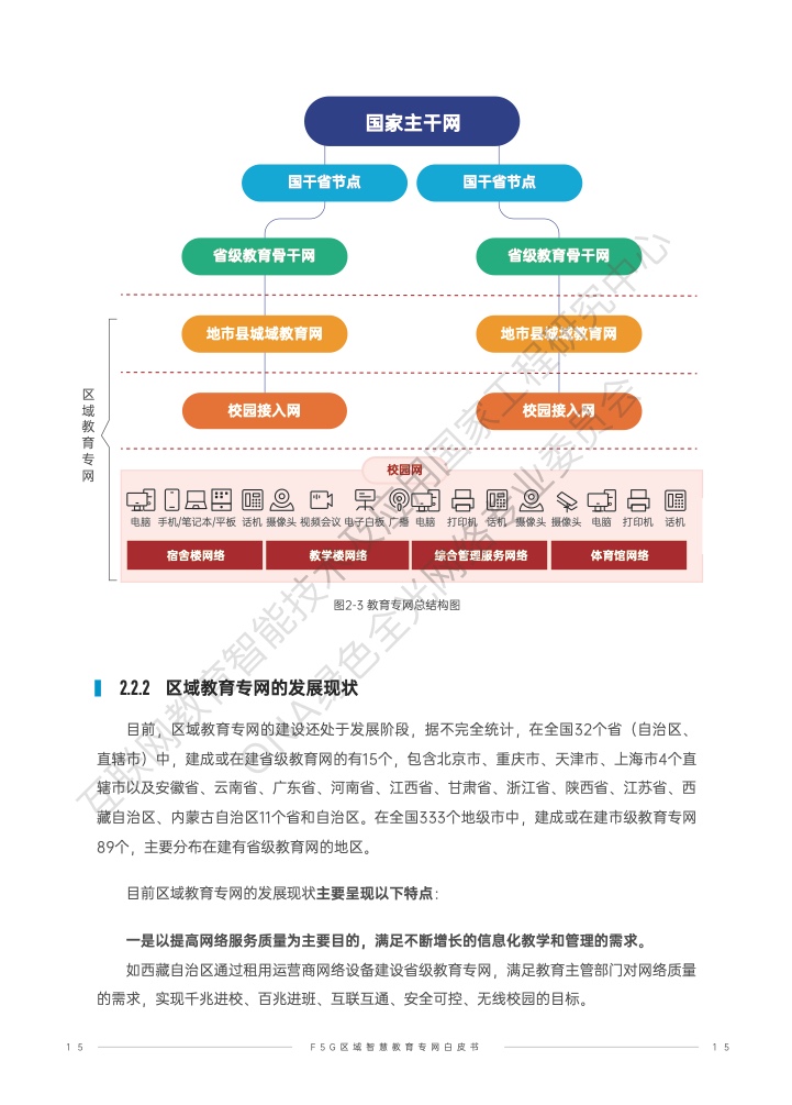 圍繞智慧教育理念,國(guó)家出臺(tái)了多項(xiàng)政策,比如《關(guān)于推進(jìn)教育新型基礎(chǔ)設(shè)施建設(shè)構(gòu)建高質(zhì)量教育支撐體系的指導(dǎo)意見(jiàn)》及《“十四五”數(shù)字經(jīng)濟(jì)發(fā)展規(guī)劃》中提出“推進(jìn)教育新型基礎(chǔ)設(shè)施建設(shè)”,核心是依托物聯(lián)網(wǎng)、云計(jì)算、無(wú)線(xiàn)通信等新一代信息技術(shù),形成物聯(lián)化、智能化、感知化的教育信息生態(tài)系統(tǒng)。區(qū)域教育專(zhuān)網(wǎng)是指把同一地區(qū)或者同一城市內(nèi)所有學(xué)校、研究機(jī)構(gòu)、本地的教育機(jī)構(gòu)通過(guò)網(wǎng)絡(luò)互聯(lián),使教育資源整合、開(kāi)放、共享,達(dá)到整體信息化集成運(yùn)用的寬帶網(wǎng)絡(luò),是區(qū)域教育信息化公共支撐環(huán)境的重要組成部分,為區(qū)域教育信息化發(fā)展起到數(shù)字底座的作用。