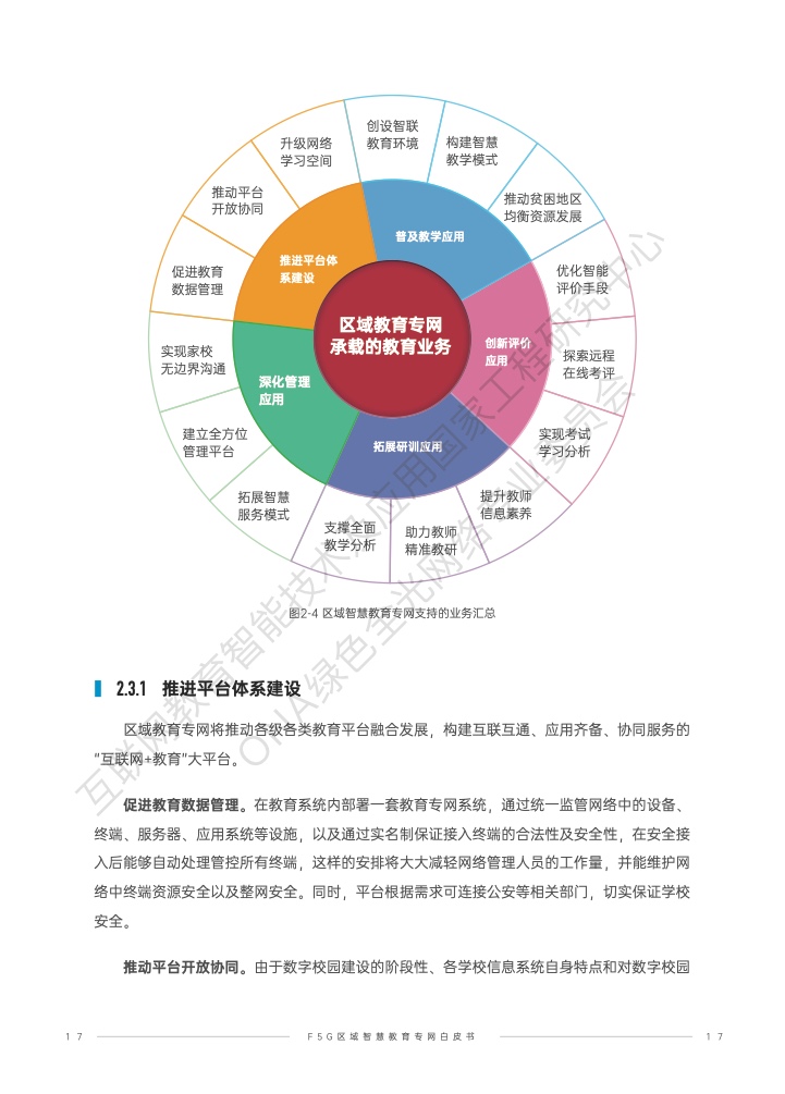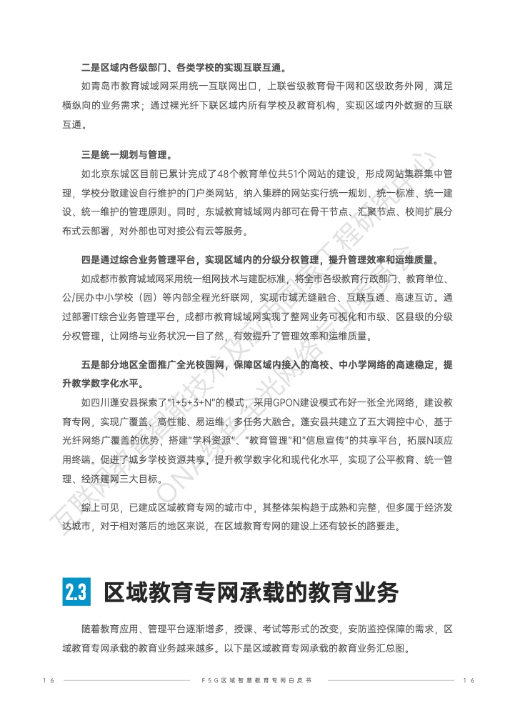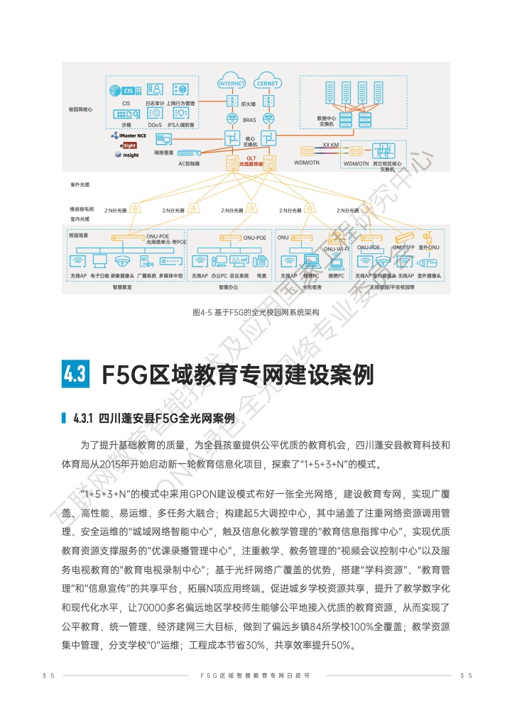 5. F5G區(qū)域教育專(zhuān)網(wǎng)的建設(shè)為虛擬實(shí)訓(xùn)、學(xué)習(xí)環(huán)境智聯(lián)、智慧云考場(chǎng)、家校共同體、教師研訓(xùn)、智慧評(píng)價(jià)等典型教育應(yīng)用場(chǎng)景提供高質(zhì)量支撐。