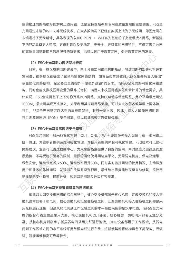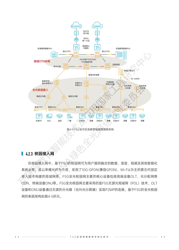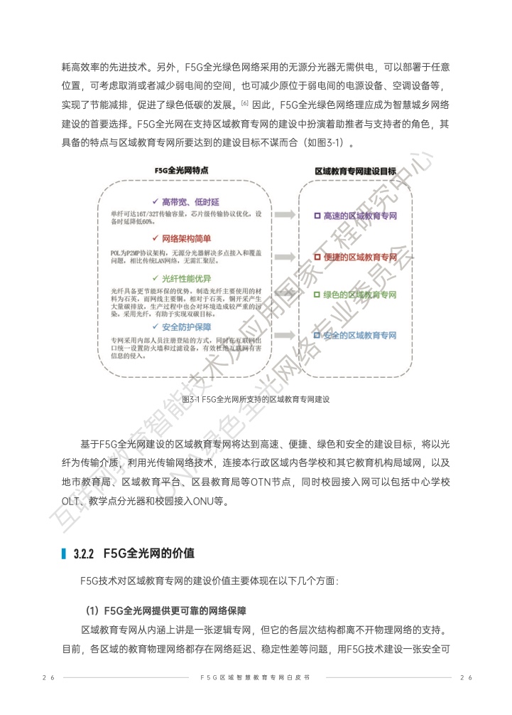 4. F5G全光網(wǎng)的大帶寬、低時(shí)延、廣連接、綠色低碳的特點(diǎn)與區(qū)域教育專(zhuān)網(wǎng)高速、便捷、綠色、安全的建設(shè)目標(biāo)一致。