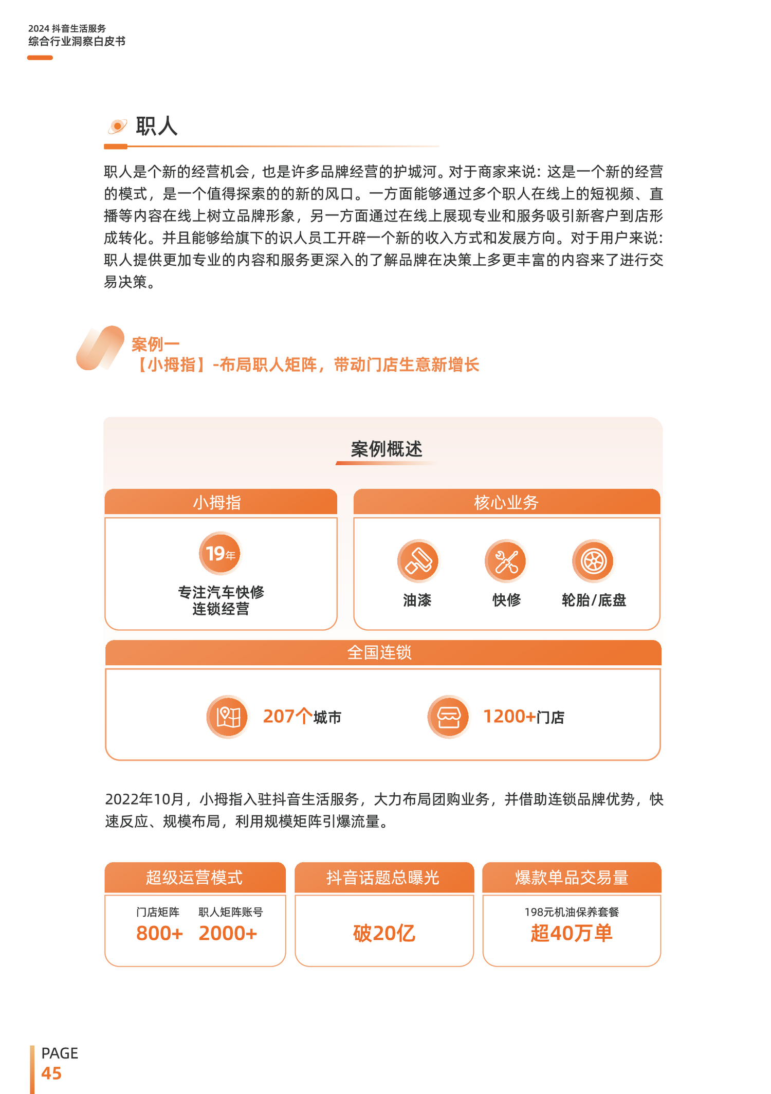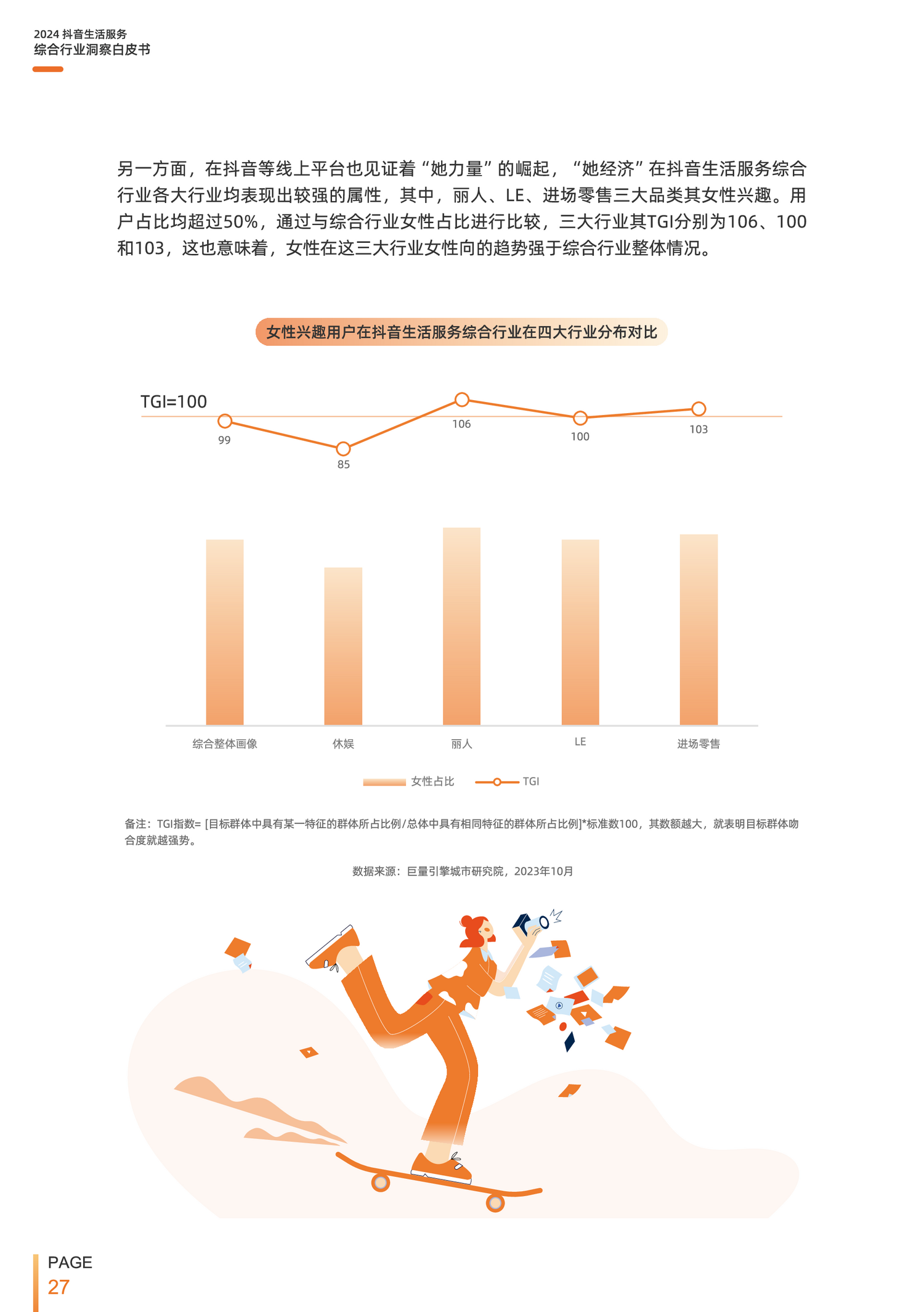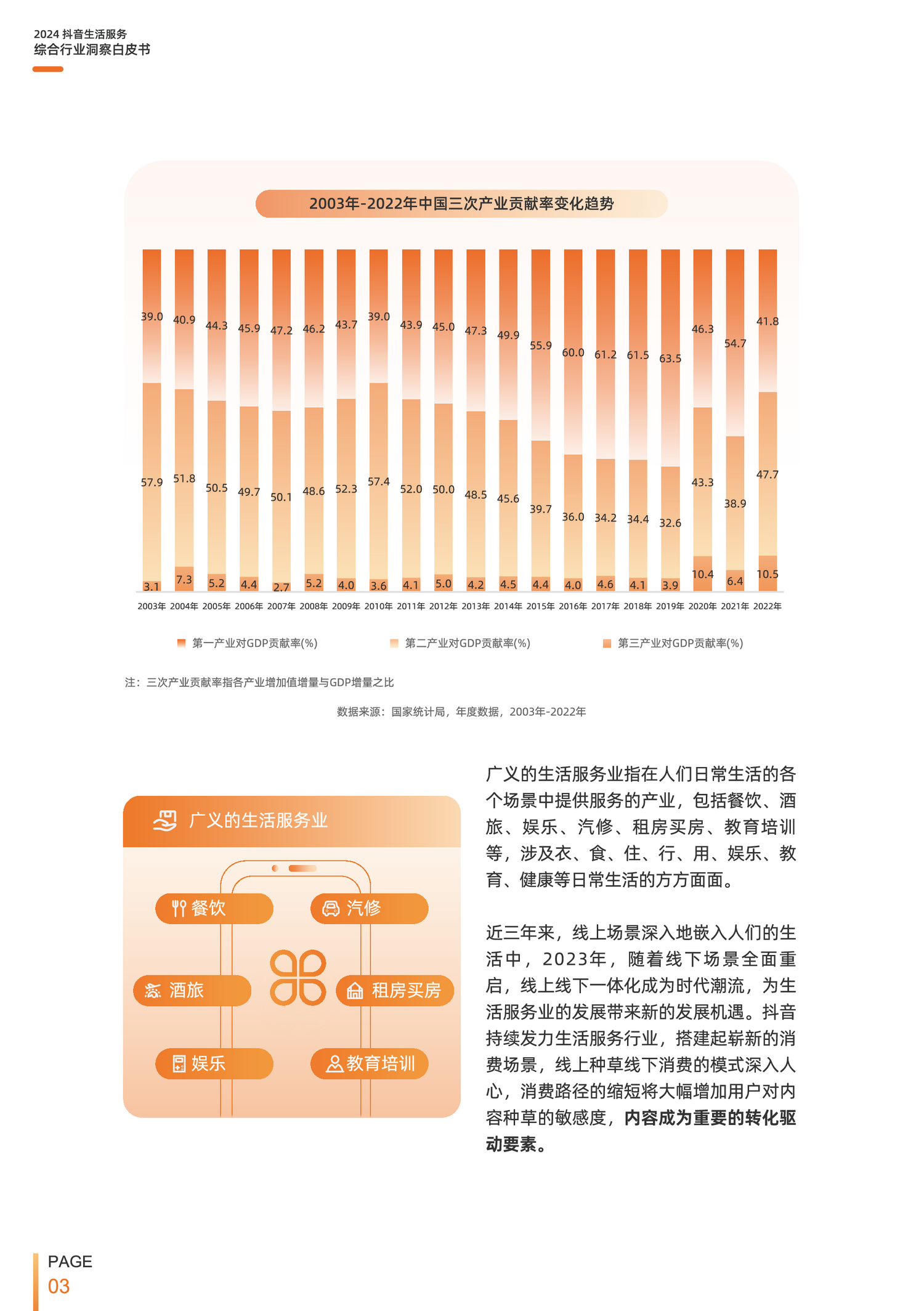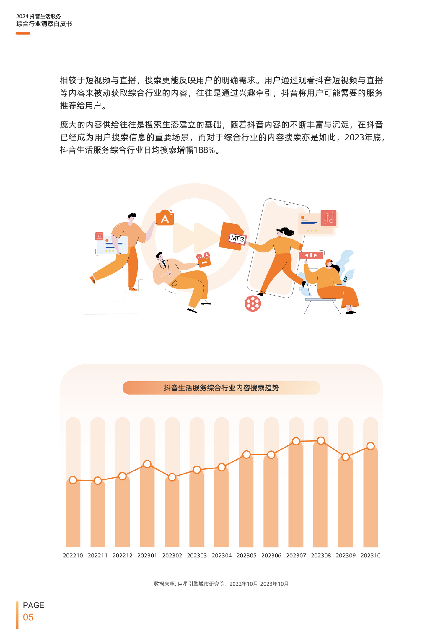 巨量引擎城市研究院聯合抖音生活服務發布《2024抖音生活服務綜合行業白皮書》,將從行業、用戶、經營三大視角對抖音生活服務綜合行業進行梳理解讀,通過正當時、新場景、新玩法三大關鍵詞詮釋綜合行業近一年來的發展變化趨勢。