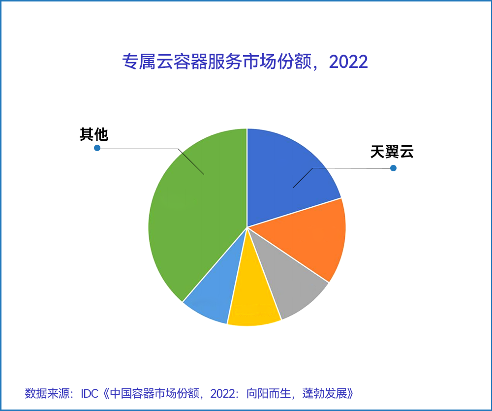 近日,IDC發布的《中國容器市場份額,2022:向陽而生,蓬勃發展》數據顯示,天翼云在2022年專屬云容器服務市場中,高居榜首,實力領跑。