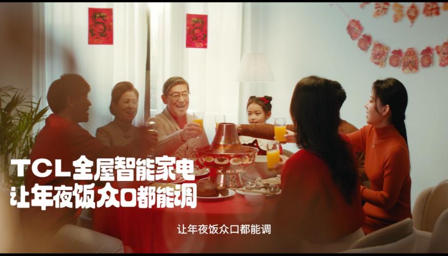 TCL的創意片中,人小鬼大的小女孩在爸媽的鼓勵下,大膽向爺爺奶奶提出《年夜飯賦能計劃》,借助TCL全屋智能家電,成功安排了一場南北通吃的飯局。