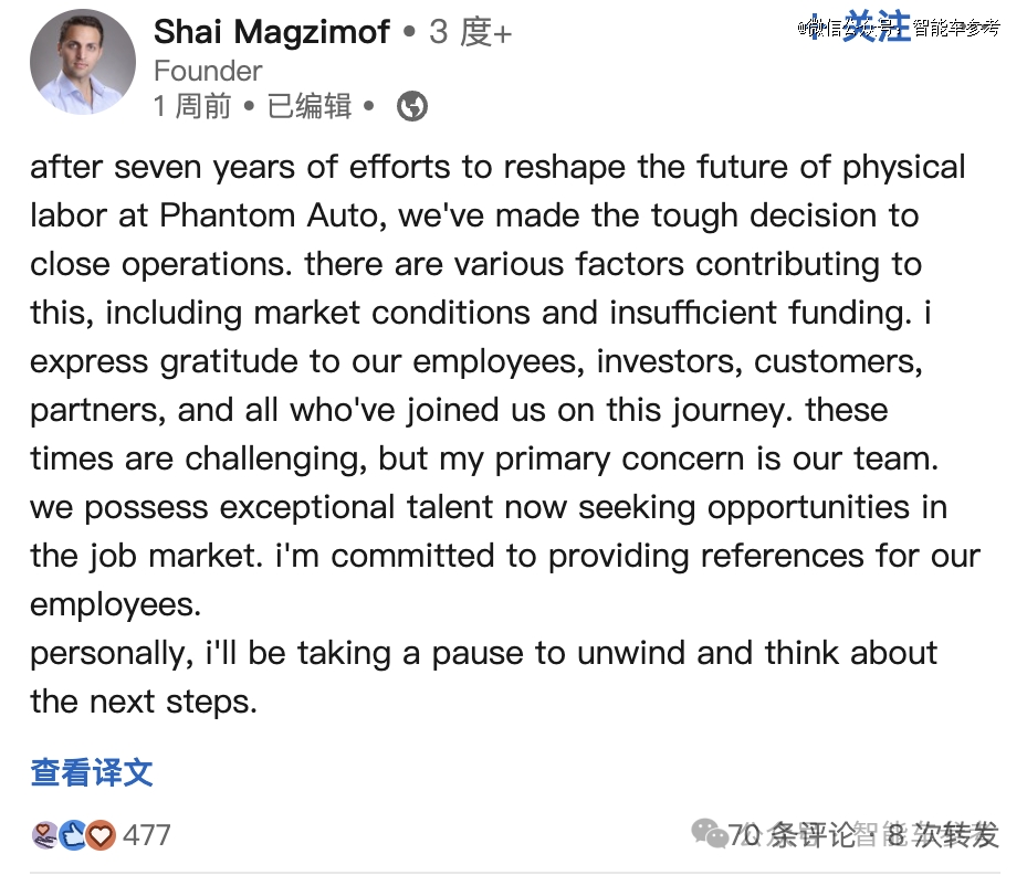 最新消息,專做云代駕的自動駕駛初創公司Phantom Auto,官宣停止運營。