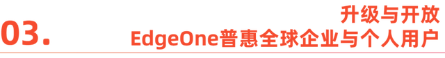2023年8月,EdgeOne正式面向全量用戶開放產品服務,滿足大中小企業和個人開發者的業務需求;今年3月,EdgeOne進行了產品的全面升級迭代。