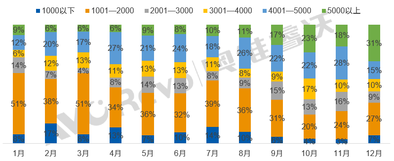 從價格段來看,1001—2000元、2001-3000元的價位段份額較高,對于預算有限或對產品性能要求不高的消費者來說,性價比高。與此同時,4001-5000元及5000元以上價格段份額有所上升,高價格段的產品不僅品質有保障,往往集成了人工智能、互動學習、個性化教學等功能。對于身處教育競爭激烈的環境中,家長們更愿意為創新功能買單,以期望孩子能夠跟上時代的步伐,掌握未來社會所需的技能。