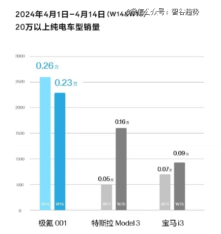 這么算下來,4月前兩周里,極氪001的銷量是超過小米SU7的,不過小米SU7是4月3日才啟動交付。