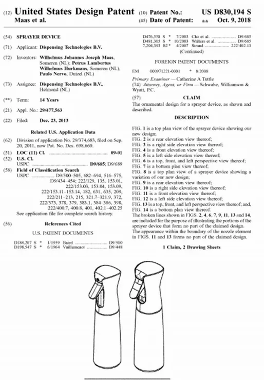 其次,因疏忽失察導致的“無形無意”間的侵權,多表現為對相關領域缺乏嚴謹的調查意識。比如今年開年的第一周內,跨境電商領域就發生了將近30起TRO維權案件。其中一起是某荷蘭企業旗下一款噴霧瓶產品發生外觀專利維權案件——事發前,不少企業根本沒想到,這個常見品類其實已在美國專利商標局專利中心注冊了專利。