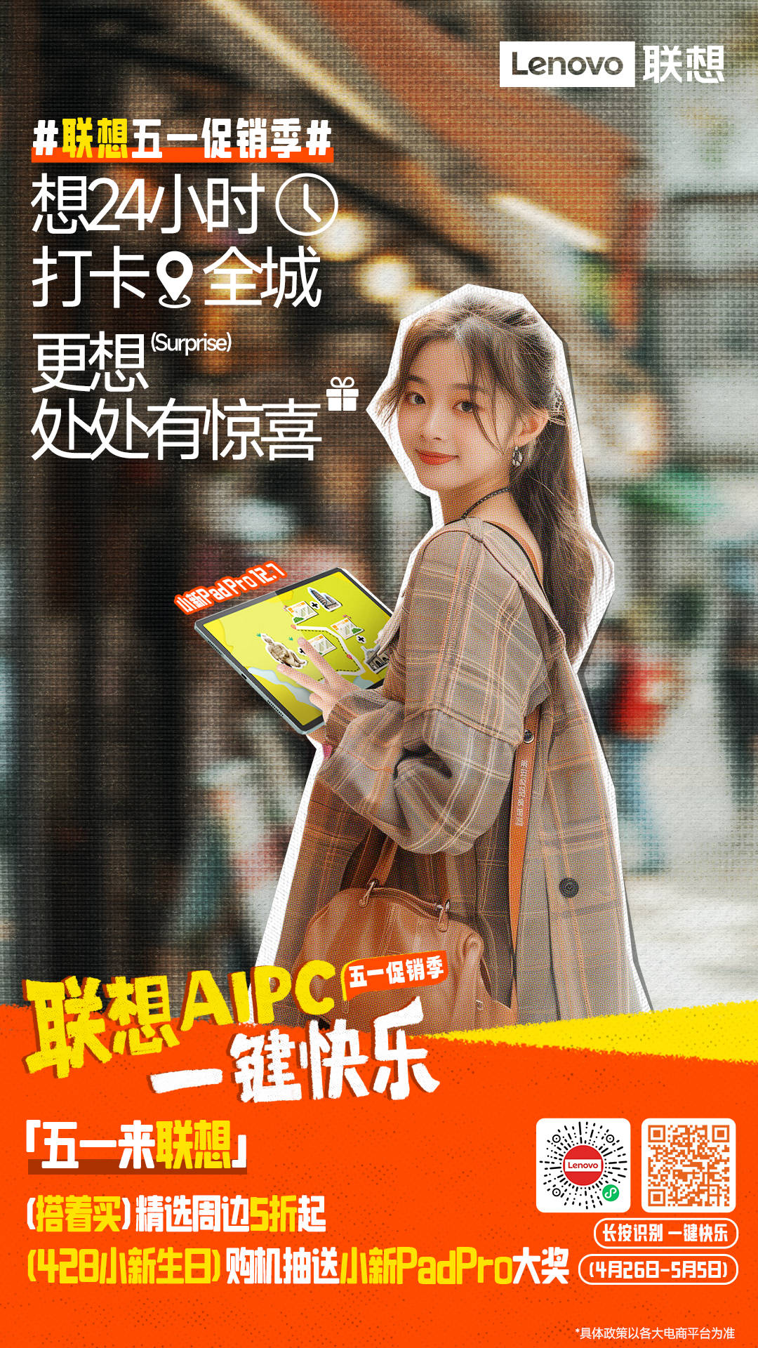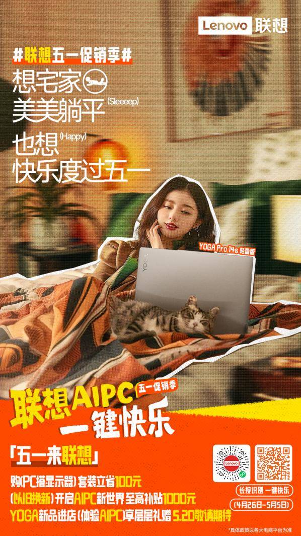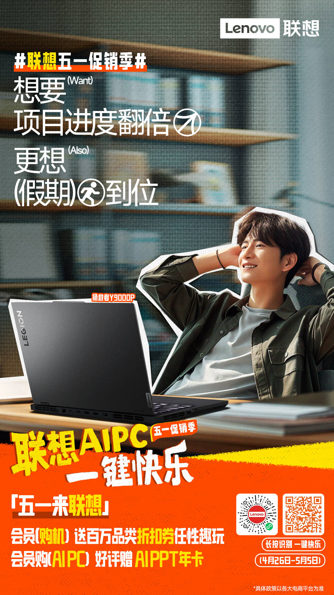 聯想五一AI PC促銷季讓快樂一鍵開啟,AI PC、臺式機、手機、平板以及生態周邊,多種品類全面覆蓋,滿足你的多樣需求。這個五一,你不僅能體驗到多款AI PC與其他熱門產品的完美組合,還有機會享受到多重驚喜福利,解鎖智能生活的無限可能。登錄聯想官網即可獲取更多信息,精彩活動不容錯過,超值福利等你來享~