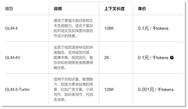 智譜AI的大模型的價格