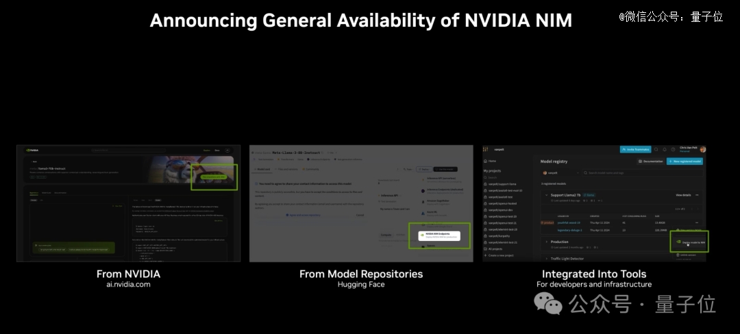 AI對于企業的影響,老黃認為AI加速每一個應用程序。他首先談到了NIM推理微服務,這是一個幫助開發者或者企業輕松構建AI應用,簡化大模型部署程序。