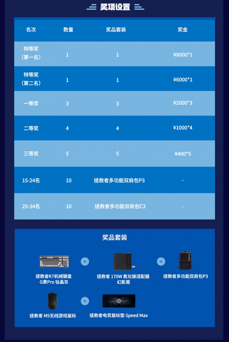 本次大賽設(shè)有總額高達(dá)12萬RMB的獎池,除豐厚的現(xiàn)金獎勵,還有聯(lián)想拯救者筆記本、平板電腦等前沿科技獎品,為你的技術(shù)探索保駕護(hù)航,創(chuàng)造無限可能。