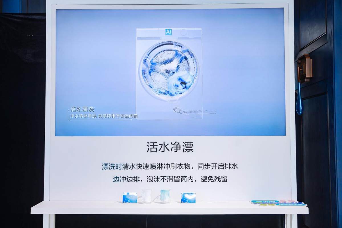 洗衣機甩干時的振動噪音問題,也會影響用戶的生活。現場工作人員則通過將裝滿水的水杯放置在海爾云溪系列洗衣機上演示。開啟高速脫水后,海爾云溪洗衣機平穩安靜水面紋絲不動。此外,據工作人員介紹海爾云溪系列洗衣機還創新升級了活水精華洗,它能將少量水、洗衣液預混合成精華液,高壓噴到衣服上,邊噴邊洗,讓衣服洗得又快又干凈。升級的活水凈水漂則能做到凈水噴淋,像在水龍頭下沖洗一樣,可以漂洗得更徹底,防止化學殘留刺激皮膚。