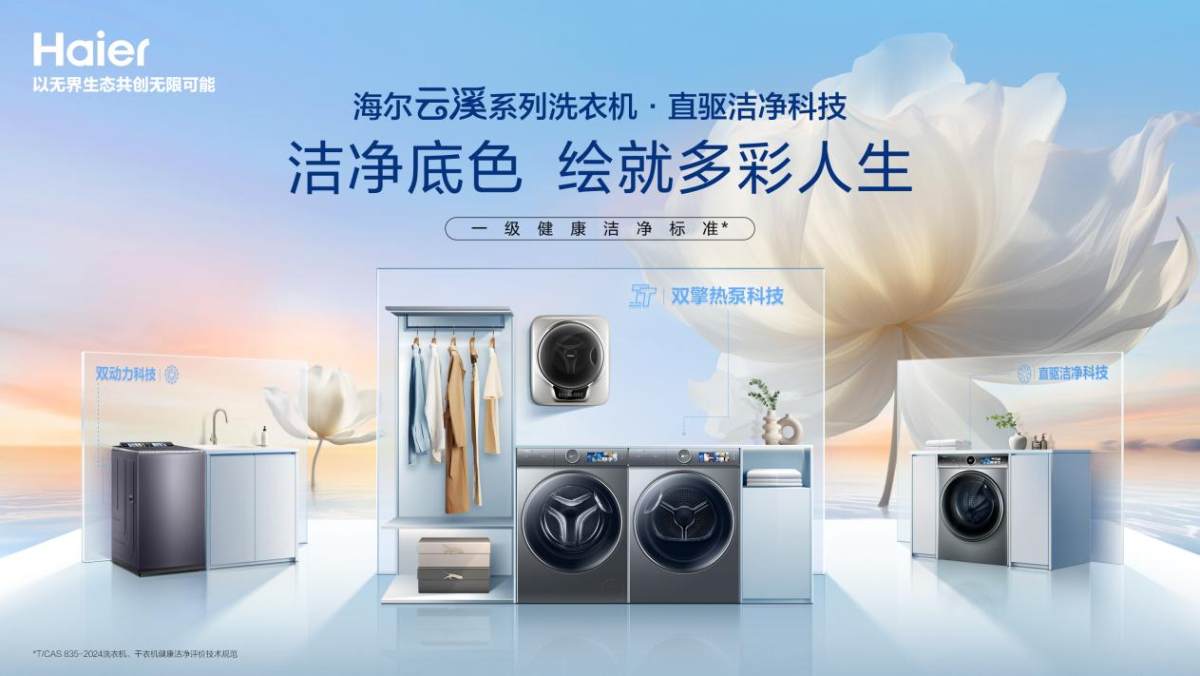 海爾云溪系列洗衣機之所以能夠成為用戶的首選,正是因為其原創的直驅潔凈科技與雙擎熱泵科技,為用戶帶來差異化的洗烘體驗,一站式滿足了用戶從洗護到烘干的全流程需求。