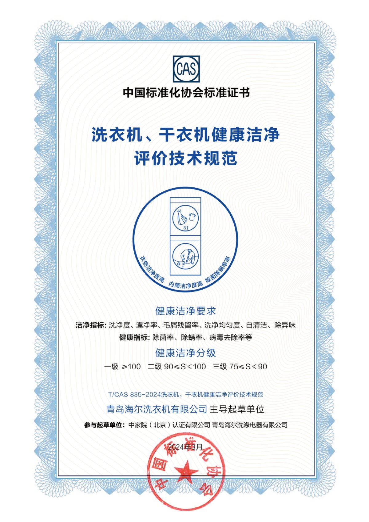 直驅潔凈科技:海爾洗衣機達到一級健康潔凈標準