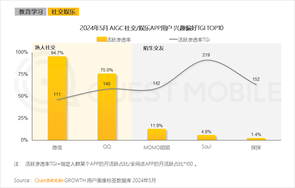 值得注意的是,他們對QQ的滲透率僅次于微信,且滲透率TGI高于微信(140 vs 111)。