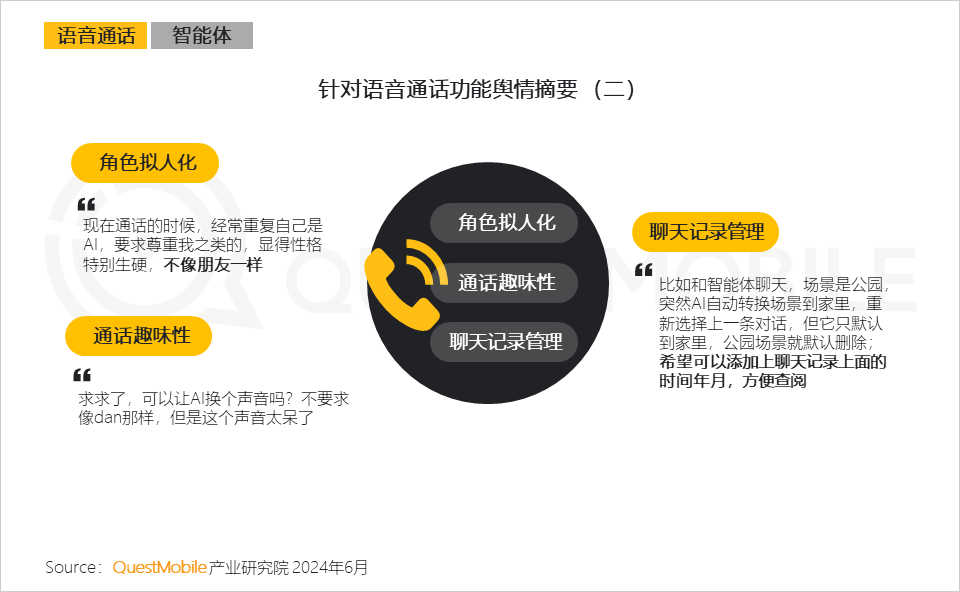 3、基于市場一定的接受度,用戶對于通話功能也提出了相應(yīng)訴求;對聊天記錄存檔管理的需求,側(cè)面反映出AIGC 作為“生活助手”這一工具類場景可發(fā)揮的空間