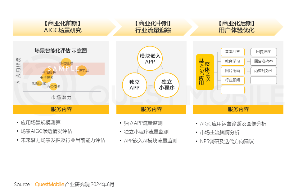 3、QuestMobile提供貫穿AIGC產(chǎn)品移動端商業(yè)化的全階段服務(wù)