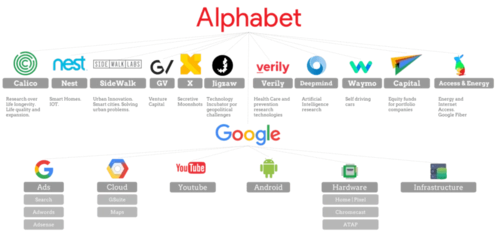 ▲谷歌母公司AIphabet的產(chǎn)品矩陣共擁有數(shù)十億用戶。