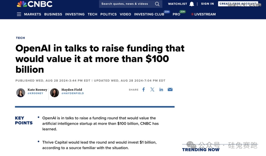 8月30日,經外媒CNBC和華爾街日報雙重求證,OpenAI正在籌劃新一輪數十億的融資,本輪融資將由美國風投機構Thrive Capital領投10億美元。