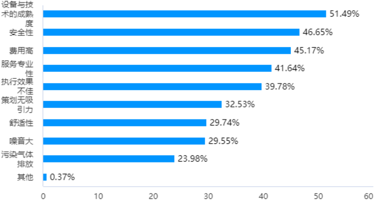 調查顯示,天氣等意外因素影響、設備與技術的成熟度、費用高、安全性、是交通出行場景下消費者最大的顧慮因素。