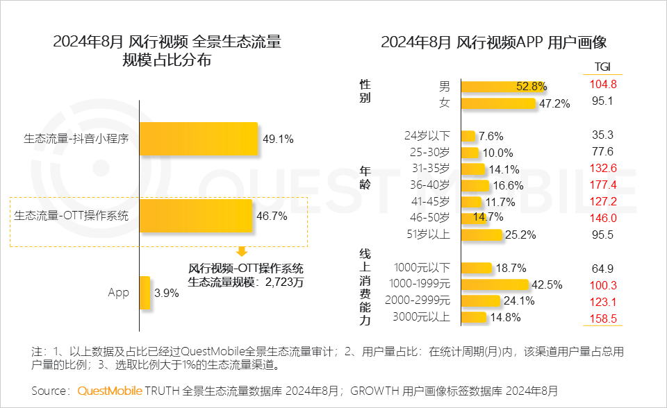 4、風行視頻通過在新媒體端、 OTT端、APP端生態流量布局,實現內容全方位覆蓋,吸引具有較高線上消費能力人群