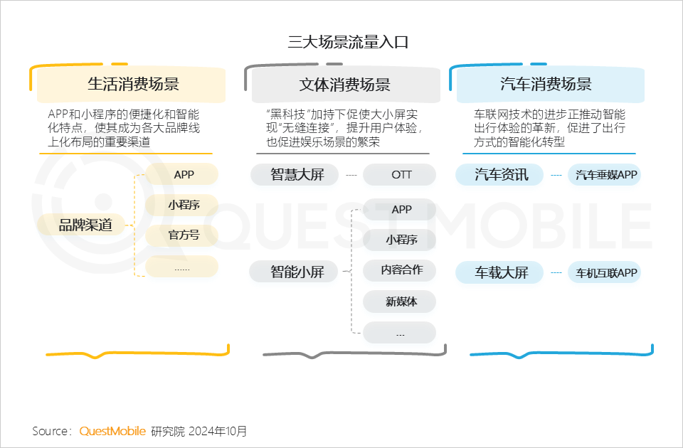首先,智能化設備類型和用戶量持續增長,智能穿戴、線上線下一體化餐飲消費、智慧家居(含智能電視),悄然深入用戶生活;其次,文體消費不僅實現大小屏聯動,還呈現出IP跨界、地域聯動的模式;第三,汽車消費從原來的“內容-營銷-購買”閉環,延展到了車內屏幕,構建起了全新的發展空間!