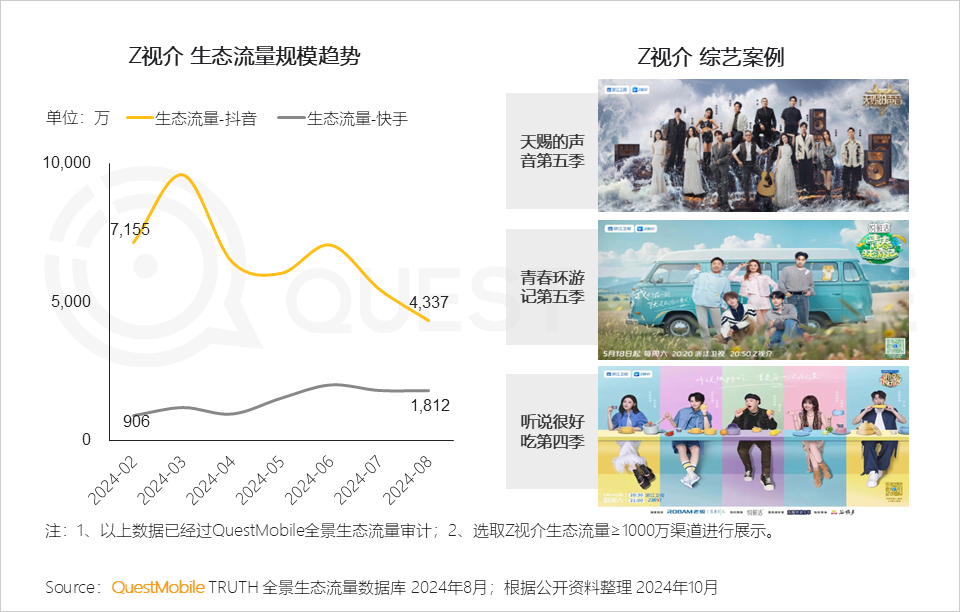 3、Z視介推出音樂類、真人秀綜藝,節目中明星云集,吸引廣泛的受眾群體,促進生態流量-抖音、快手用戶活躍