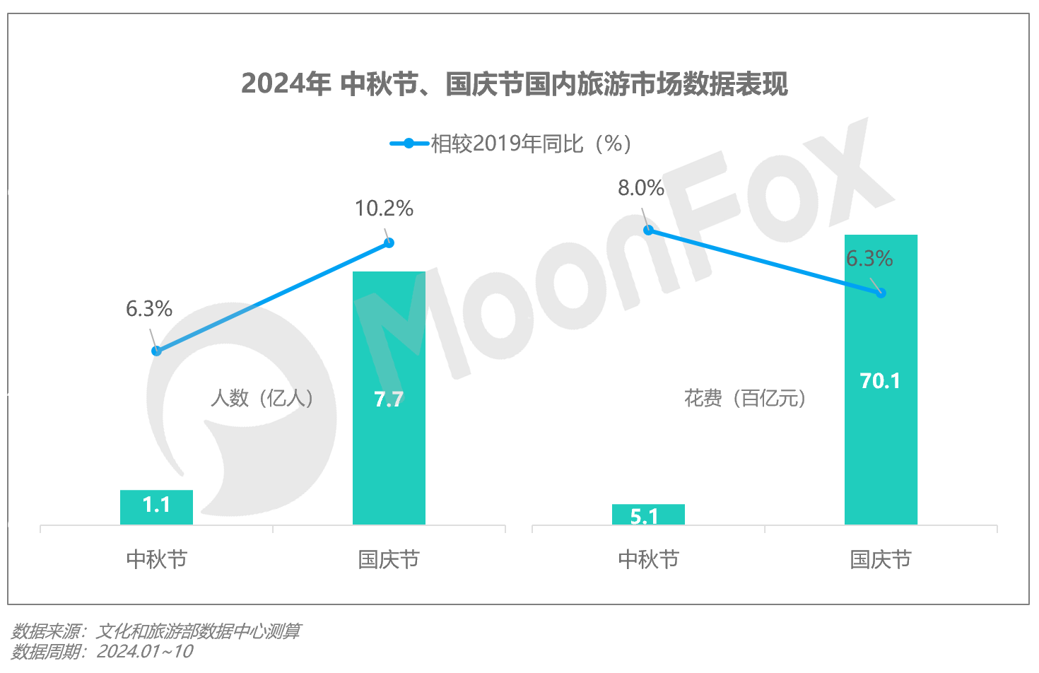 國慶節(jié)方面,國內(nèi)出游人數(shù)7.65億人次,相較2019年同期增長10.2%。一方面,游客觀看演出意愿有所提升,據(jù)測算,全國營業(yè)性演出4.43萬場次,同比增長14.5%;票房收入22.09億元,同比增長25.9%。另一方面,紅色主題旅游熱度持續(xù)攀升,國慶期間,諸如鄧小平故里旅游區(qū)舉辦主題展覽、單日接待游客超5萬人次;據(jù)攜程數(shù)據(jù),國慶期間,全國紅色旅游經(jīng)典景區(qū)日均訂單量同比增長70%。