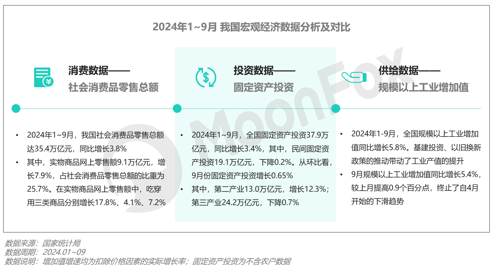 整體來看,我國第三季度經(jīng)濟(jì)增長符合預(yù)期,價格水平處于低位且消費(fèi)數(shù)據(jù)整體向好。9月中下旬,大量利好經(jīng)濟(jì)發(fā)展的政策陸續(xù)出臺,我們認(rèn)為,Q4將成為本年經(jīng)濟(jì)轉(zhuǎn)折的重要季度,市場信心的提升、內(nèi)需的回穩(wěn)均有望在第四季度中有所體現(xiàn)。