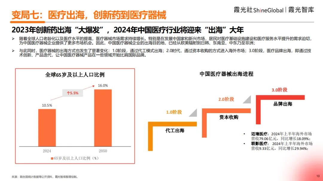 2023年創新藥出海“大爆發”,2024年中國醫療行業將迎來“出海”大年。隨著全球人口老齡化以及醫療水平的提高,醫療器械市場需求持續增長。特別是在發展中國家和新興市場,居民對醫療基礎設施建設和醫療服務水平提升的需求迫切, 為中國醫療器械企業提供了更多市場機會。因此,中國醫療器械企業的出海目的地,已經從歐美輻射到日韓、東南亞、中東乃至非洲。